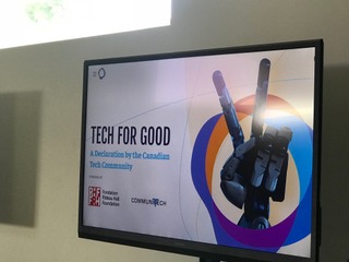 The purpose of the Tech for Good community meeting was to get feedback on the first iteration of the Tech for Good Declaration. The declaration was based on national and global data from research conducted by Deloitte and IPSOS, and by hosting open discussions through workshops and open-forums. The 28th Governor General and innovation champion David Johnston would read the new version of the Declaration—the planned outcome of the Tech for Good meeting—at 9:15 am on the last day of the True North conference. No pressure!